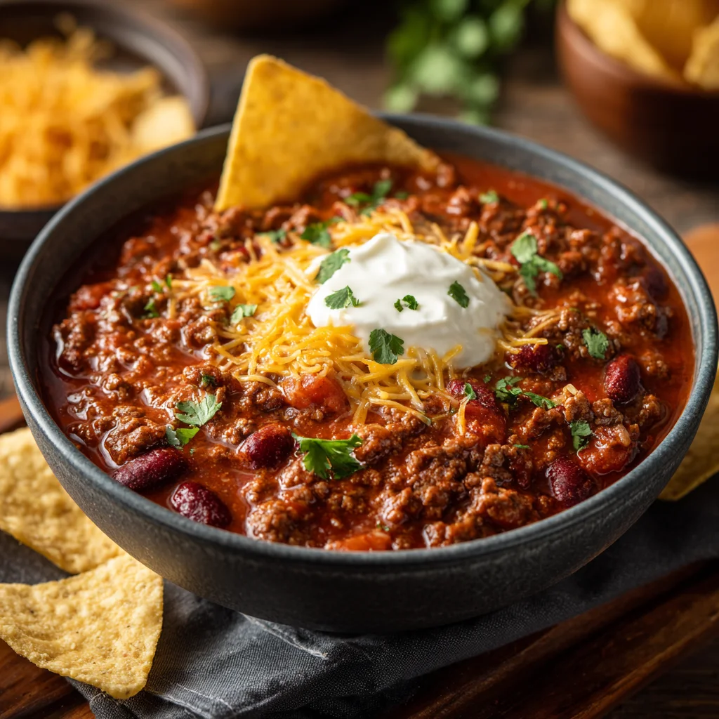 Nothing says comfort quite like a pot of chili bubbling on the stove. Ground beef is browned with onions, then simmered with beans, tomatoes, and spices until the flavors meld together. It’s hearty, filling, and perfect for cold nights. Top it with shredded cheese, sour cream, or even a handful of tortilla chips for crunch. Chili freezes well, so you can make a big batch and save half for later. It’s one of those meals that gets even tastier the next day.