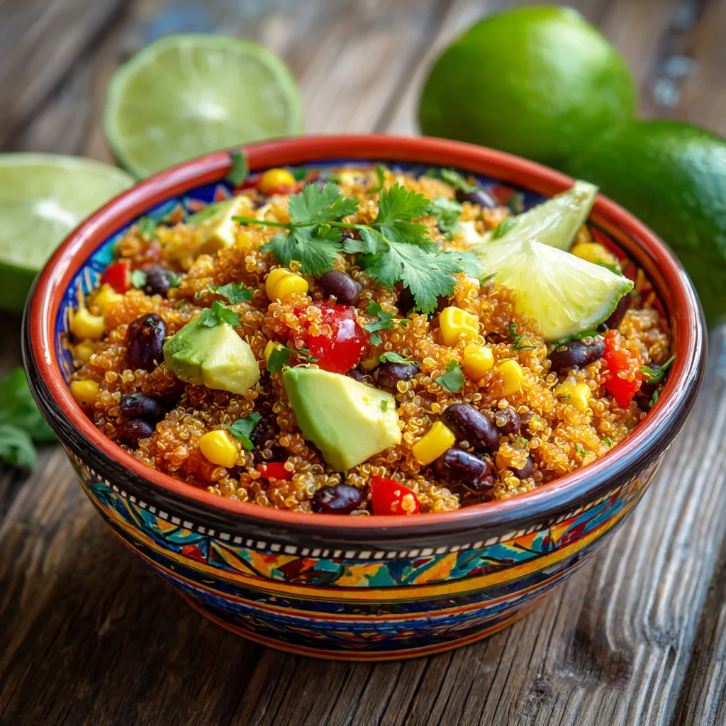 This recipe packs protein and fiber thanks to quinoa, beans, and corn. Everything simmers with salsa, cumin, and chili powder, giving it that bold, zesty flavor. Topped with avocado slices and a squeeze of lime, it’s vibrant and satisfying. It works as a main dish or even a side to grilled meats. Best of all, it’s ready in under 30 minutes. Perfect for meal prepping or feeding a hungry family fast.