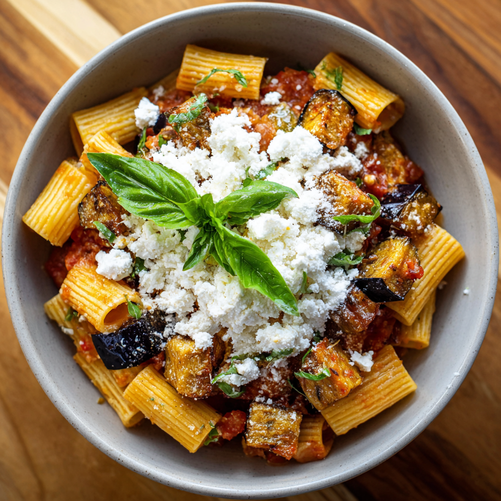 The star here is the eggplant. You cube it and fry it in olive oil until it is golden brown and creamy on the inside. The trick is to not let the eggplant get soggy; you want that contrast of texture. The pasta is tossed in a simple, vibrant tomato sauce with fresh basil, and the fried eggplant is folded in at the very last second.