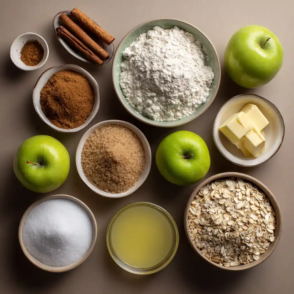 In a separate bowl, combine all-purpose flour, rolled oats, brown sugar, and a pinch of salt. Add cubed butter and use your fingers (or a pastry cutter) to work the butter into the dry ingredients until the mixture resembles coarse crumbs. Sprinkle the crumble topping evenly over the apple filling.