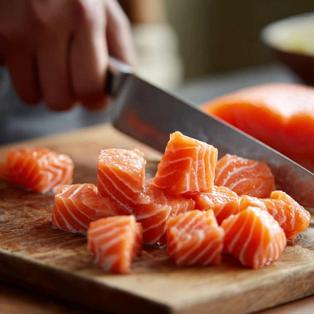 | Salmon Fillet | 1 large fillet | Skin removed, cut into 1-inch cubes. |
