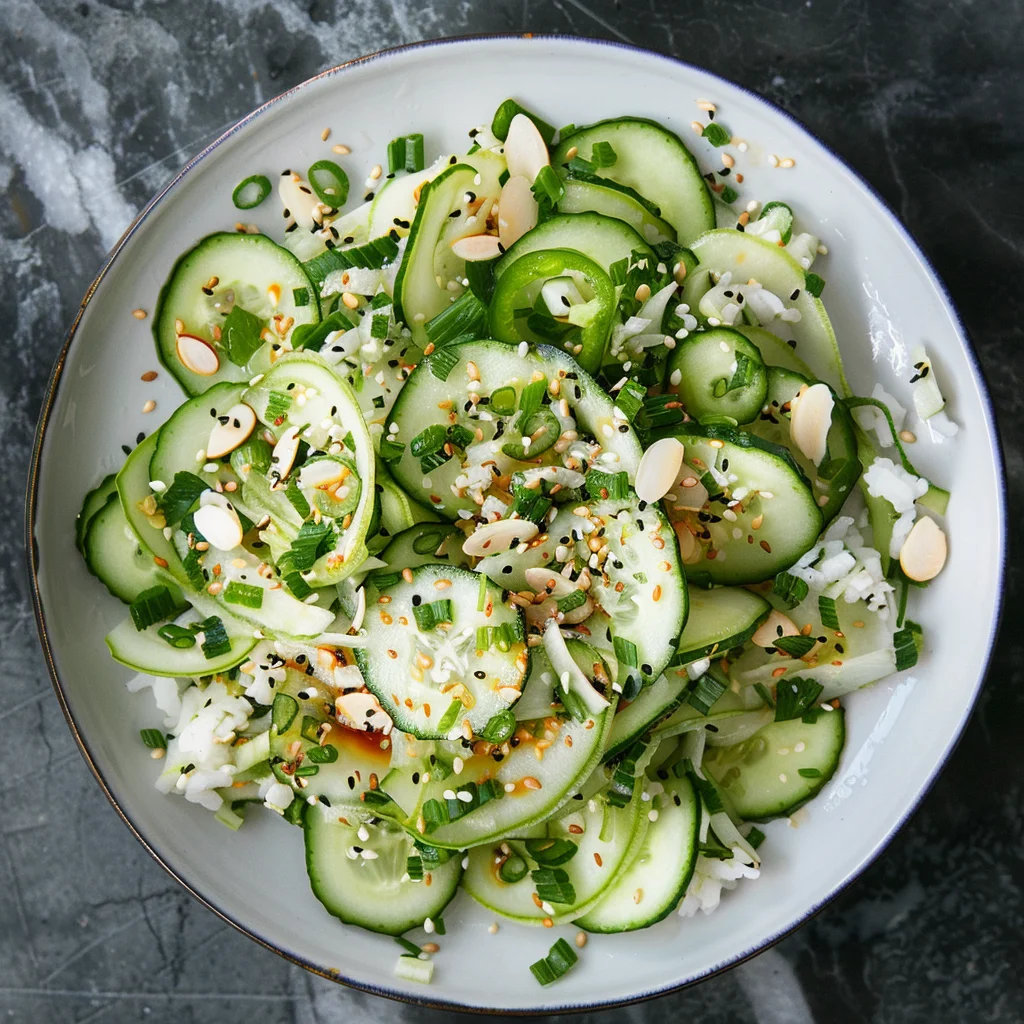 - Prepare the Cucumber: Start by slicing the cucumber thinly. You can either peel it for a smoother texture or leave the skin on for a bit more crunch. Place the cucumber slices into a large bowl.