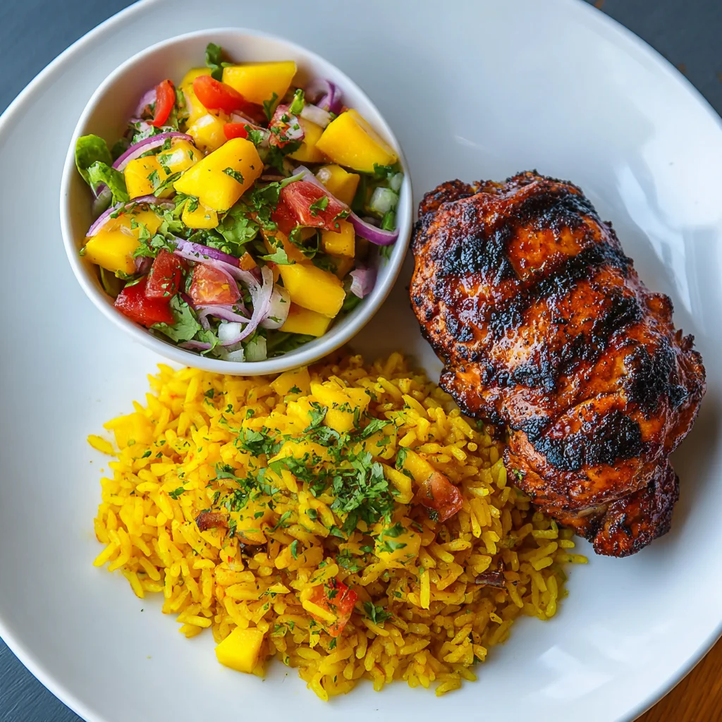 - Salad: A fresh side salad with avocado, mango, and a light dressing complements the dish.
