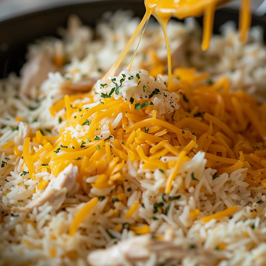 - Add the Cheese: Sprinkle the shredded cheddar cheese on top of the rice mixture. Stir it in until the cheese melts and creates a creamy texture. If you like extra cheese, you can add more on top and let it melt.