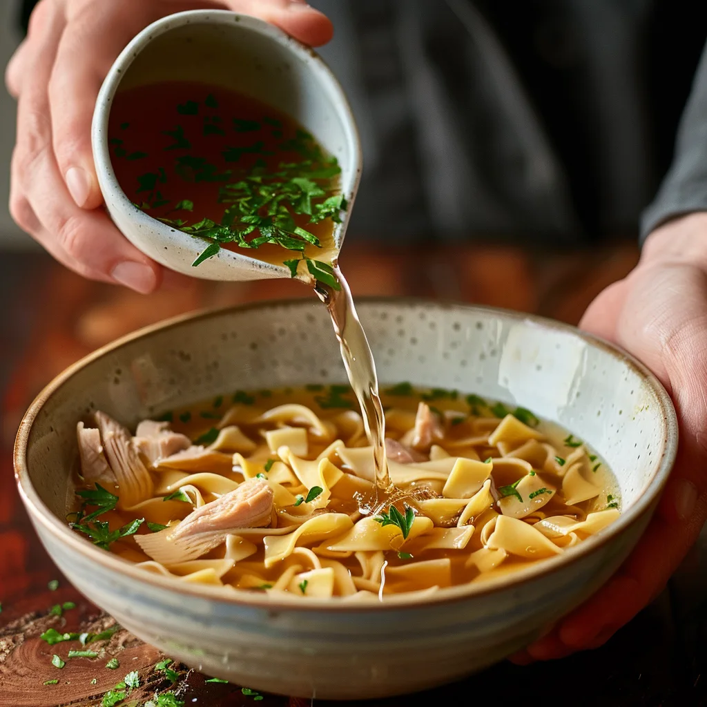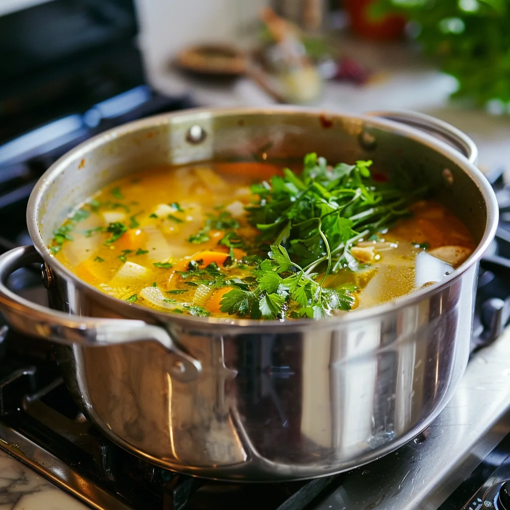 In a clean pot, melt butter and a little oil. SautΓ© finely chopped onion, carrots, and celery until they soften. Pour in that beautiful homemade broth you just made. Let it simmer until the vegetables are tender.