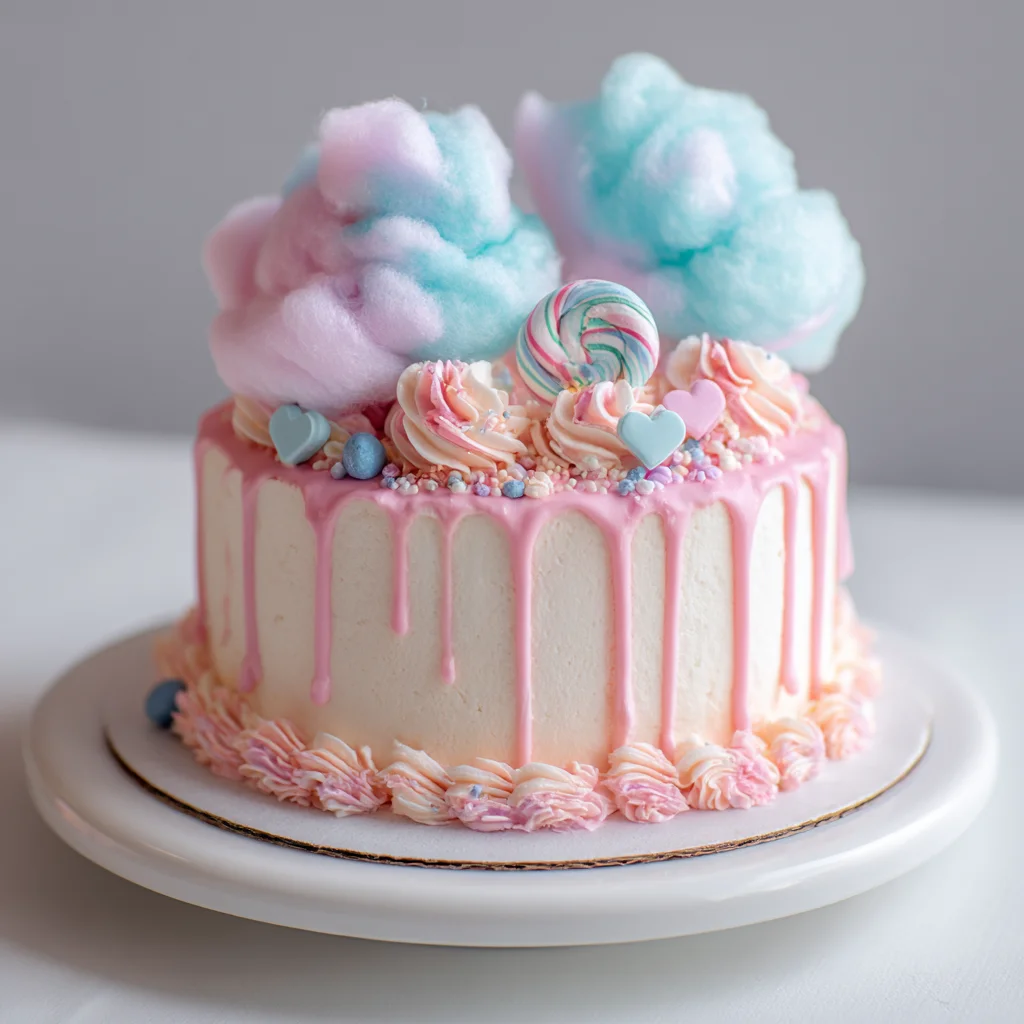 - Cotton Candy Tips: Make sure the cotton candy is added right before serving. If left on the cake for too long, it may dissolve and lose its texture.