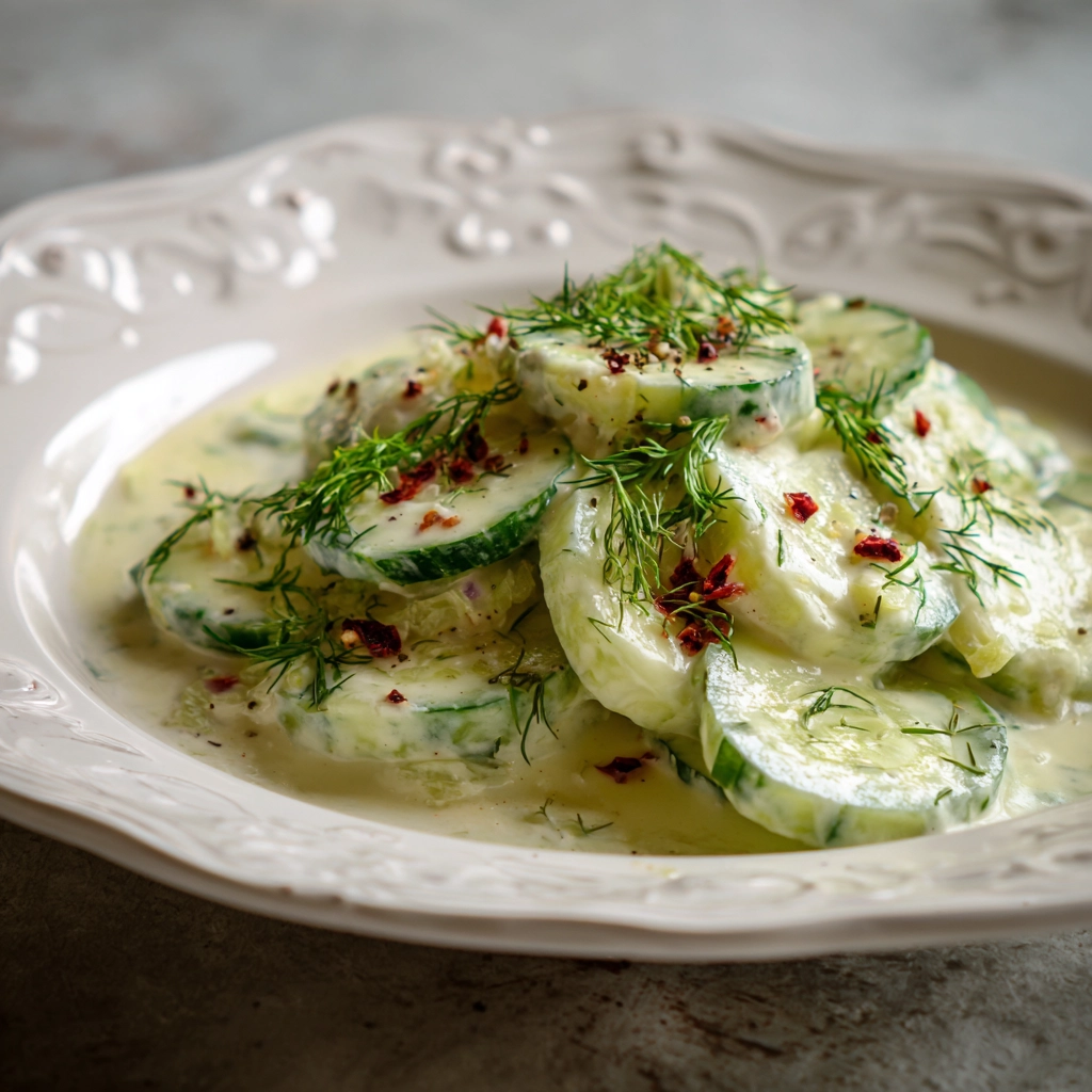 The beauty of this recipe is that it’s incredibly easy to customize. You can make it lighter by using Greek yogurt instead of mayonnaise, or add a hint of spice with freshly cracked black pepper or a pinch of cayenne. A splash of lemon or vinegar brightens the flavor, making it tangy but not overpowering. Whether served as a quick lunch side, a picnic companion, or a potluck favorite, this creamy cucumber salad is a guaranteed crowd-pleaser that feels fresh and indulgent at the same time.