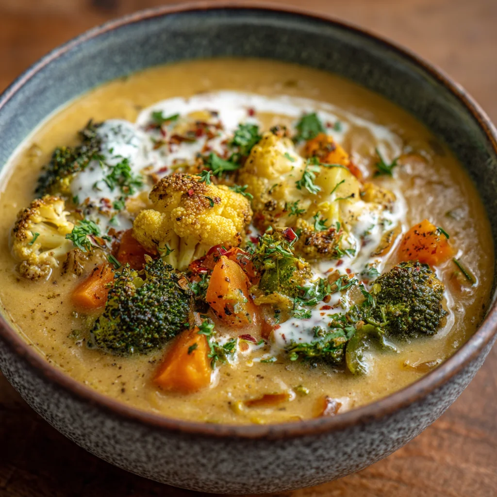 This Roasted Veggie Soup is the perfect comfort food for any time of the year, especially when you want a nutritious, flavorful, and easy-to-make meal. The combination of roasted vegetables, creamy coconut milk, and warming spices makes it a filling, satisfying dish that’s also packed with health benefits. Whether you’re serving it as a main dish or a starter, this soup will become a go-to recipe in your kitchen.