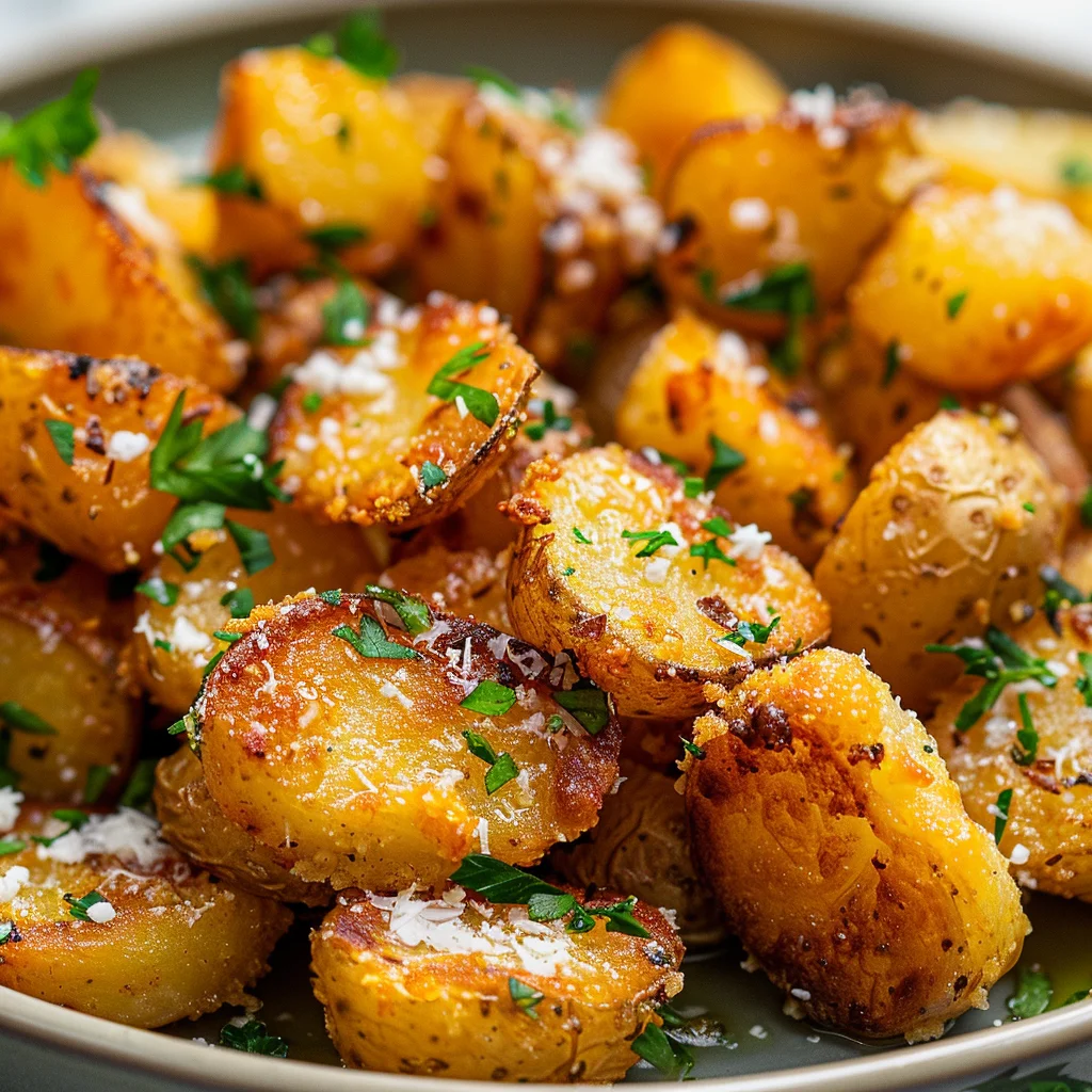 Once your potatoes are golden and crispy, remove the skillet from the heat. Sprinkle chopped fresh parsley over the potatoes for a burst of freshness. If you haven’t added Parmesan yet, this is the time to sprinkle it over the potatoes. Serve immediately while they’re hot and crispy.
