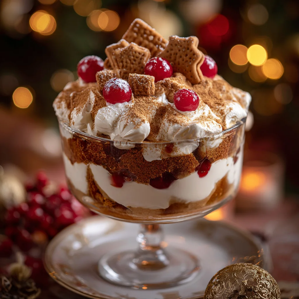 This dessert looks fancy but is surprisingly easy to assemble. You can make it the day before and serve it straight from the fridge when guests arrive. The flavors — ginger, molasses, and cream — come together so beautifully that every spoonful feels like Christmas in a cup.