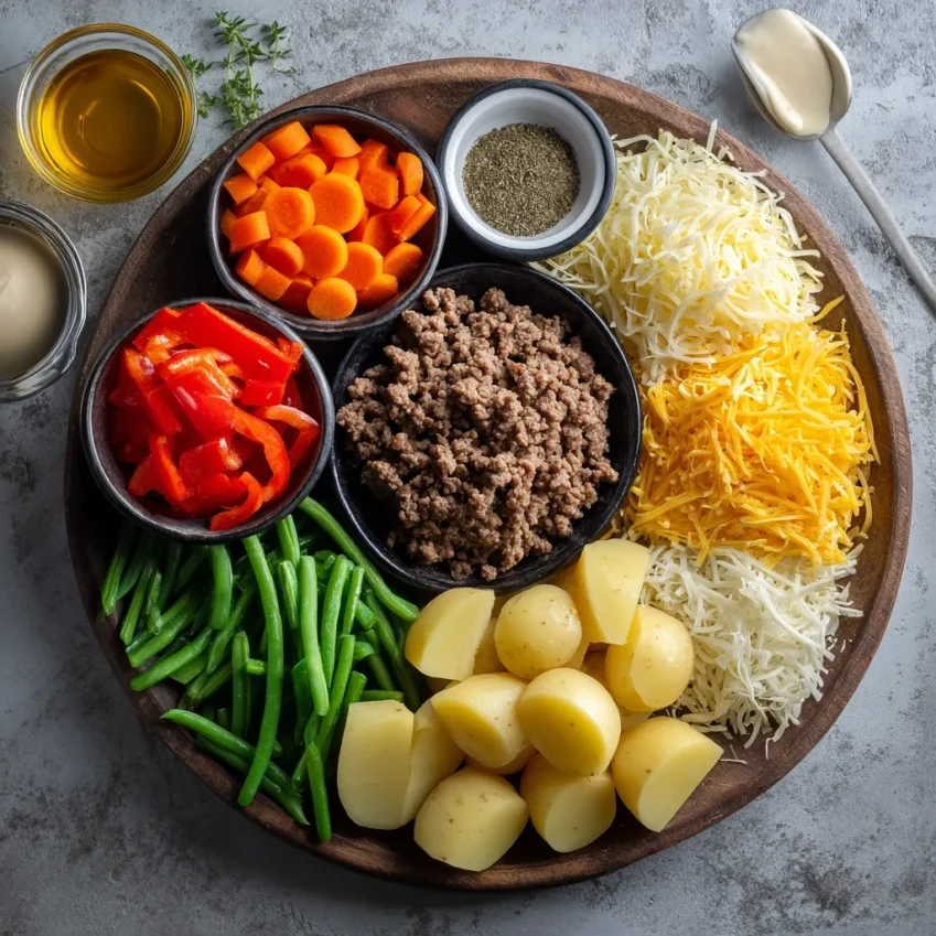 Here’s everything you need to make this savory hobo casserole with ground beef: