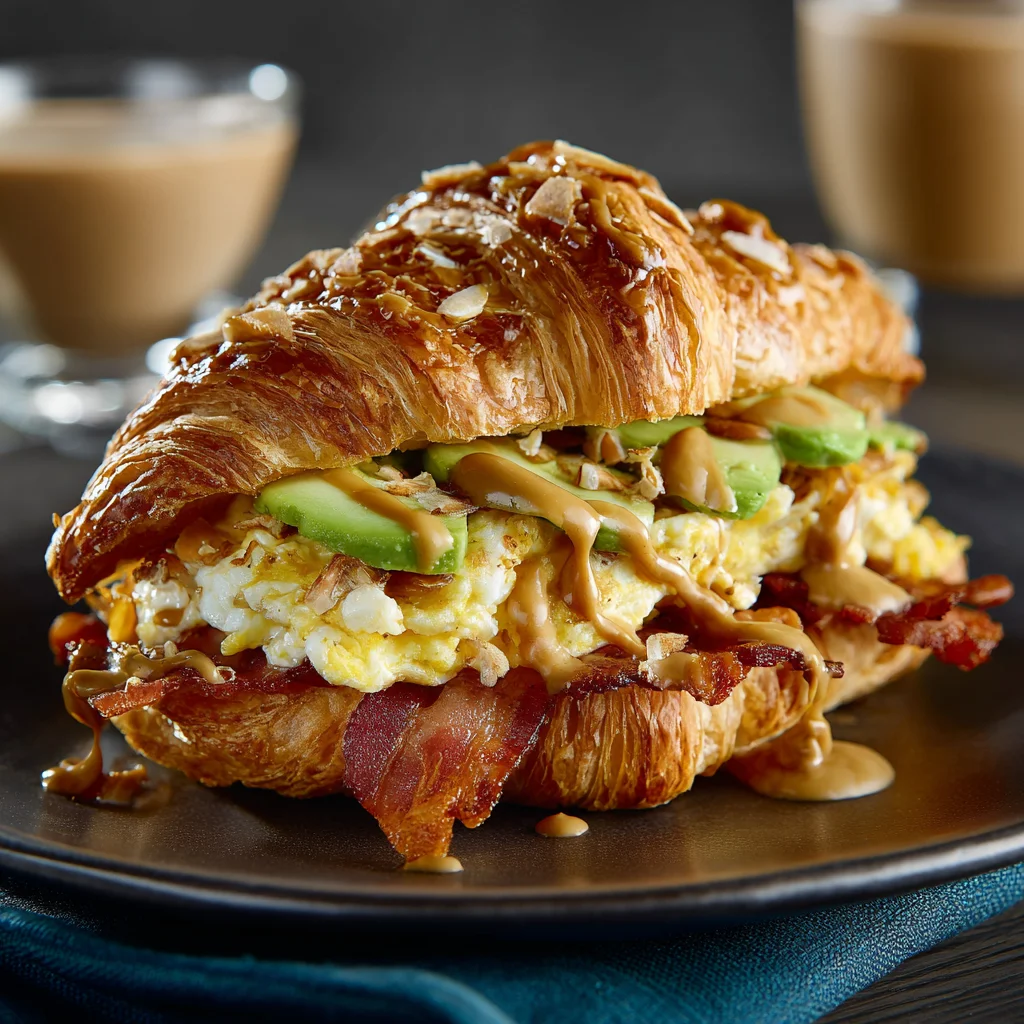 Place a slice of bacon on the bottom half of each croissant. Add a generous portion of scrambled eggs or a fried egg on top. Drizzle the maple mustard sauce over the eggs, then top with the avocado slices (if using). - Serve and Enjoy