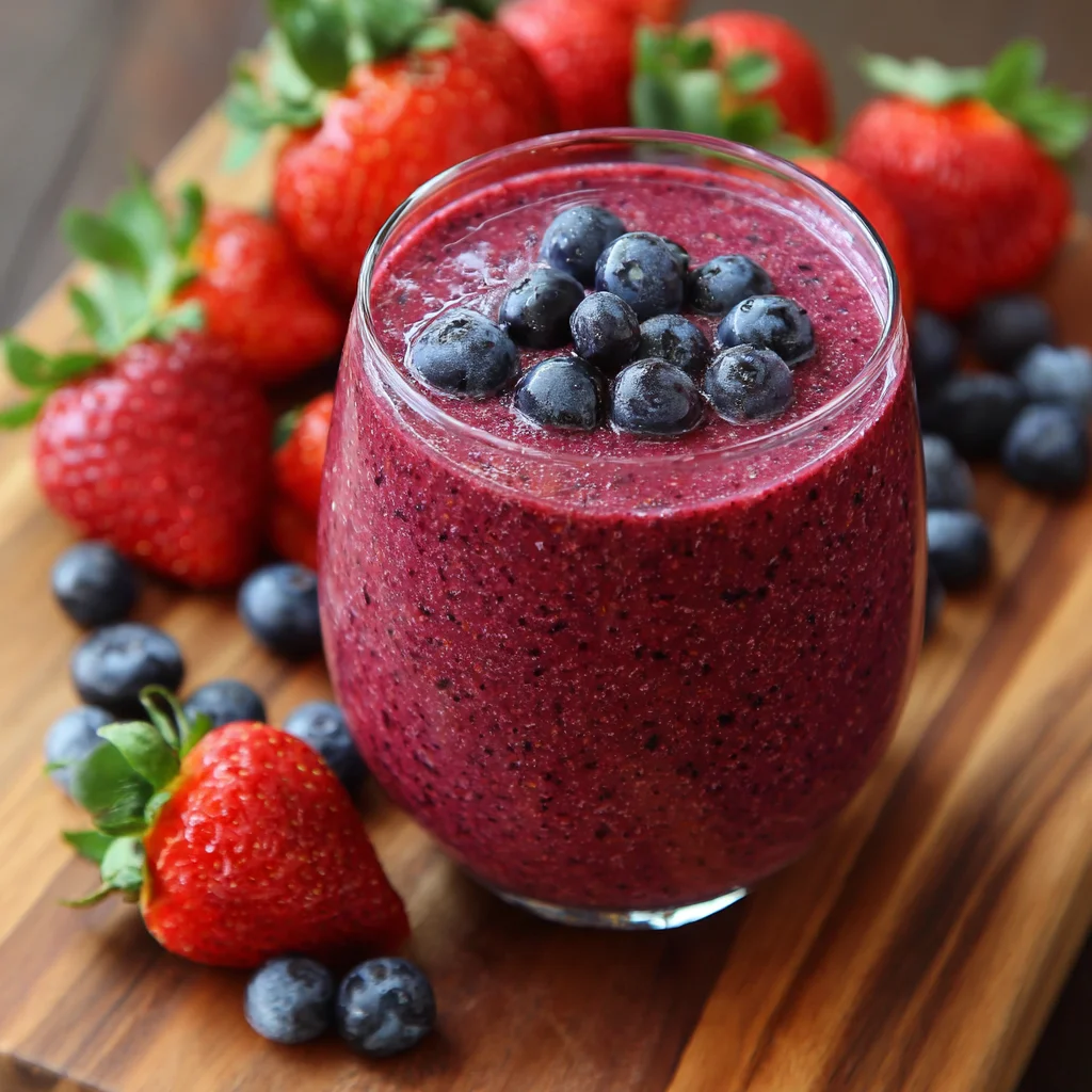 Pour the smoothie into a glass and garnish it with a few extra fresh berries or a sprinkle of chia seeds. You can also add a mint sprig or a dash of coconut flakes for a touch of flair.