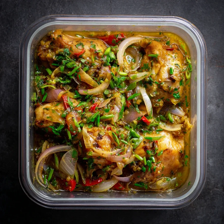 Poulet Yassa can be stored in an airtight container in the fridge for up to 3 days. If you want to keep it longer, you can freeze it for up to 2 months. To reheat, simply warm it in a pan over low heat, adding a splash of water or broth to loosen the sauce.