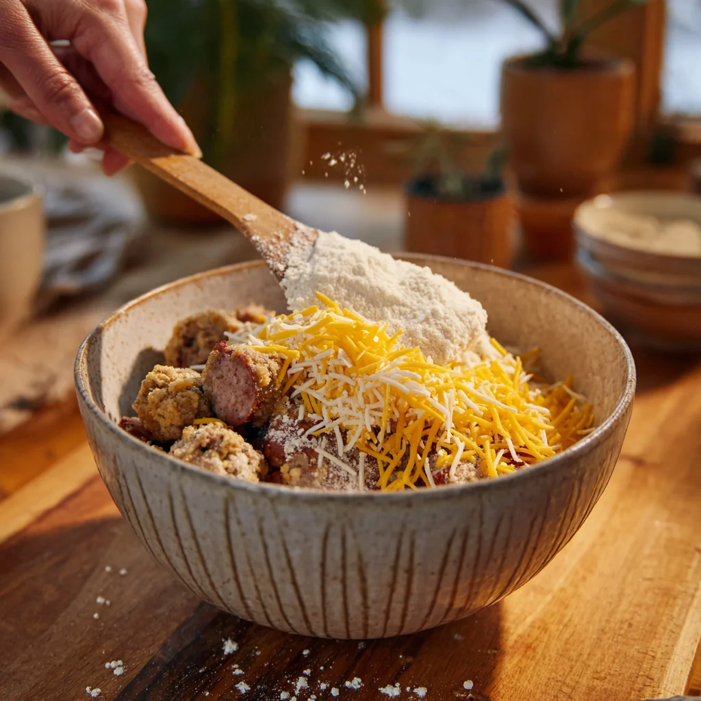 • Texture Tip: For extra fluffiness, increase the amount of milk slightly. This will make your sausage balls even softer and lighter on the inside.