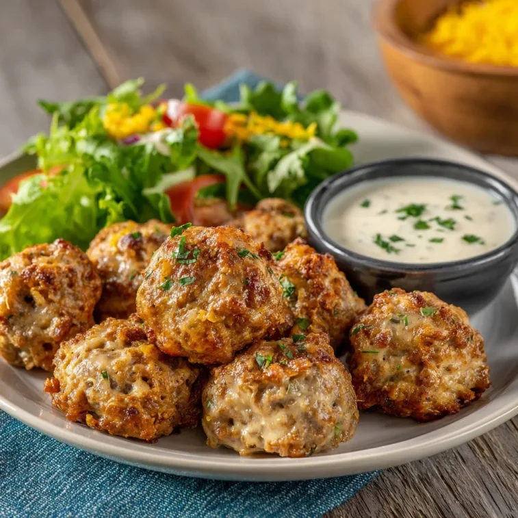 5. Serve and Enjoy: Let the sausage balls cool for a few minutes, then serve with your favorite dipping sauces, like ranch or hot sauce. These savory bites are perfect for snacking, party platters, or even as a quick breakfast on the go!