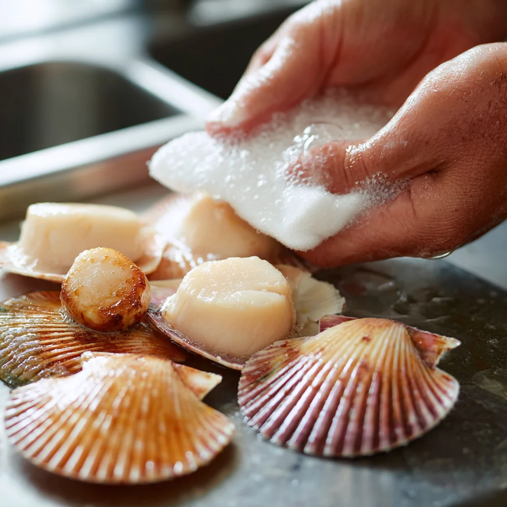Begin by cleaning the scallops. Remove the muscle (the small side piece) and any remaining shell bits. Pat the scallops dry with a paper towel. This is important for getting a good sear when cooking.