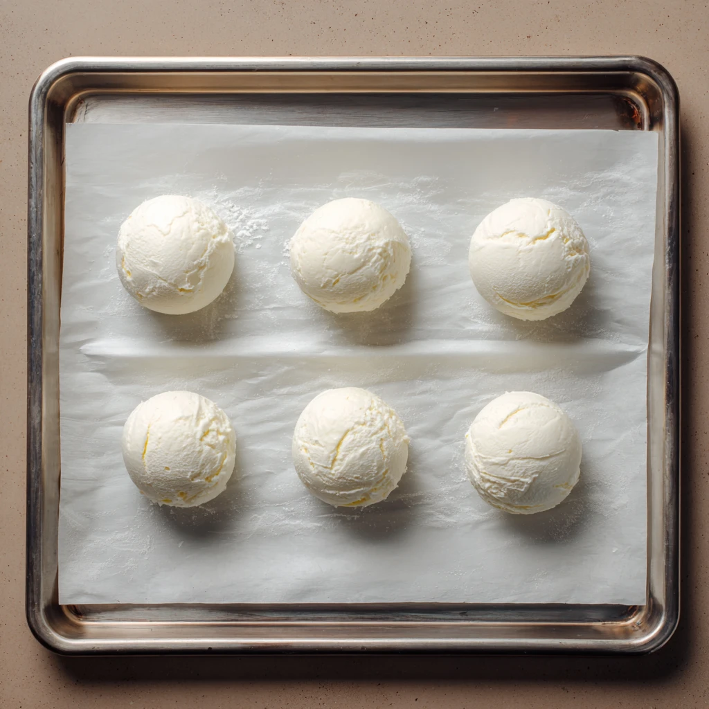 - Scoop perfect balls of ice cream and place them on the paper.