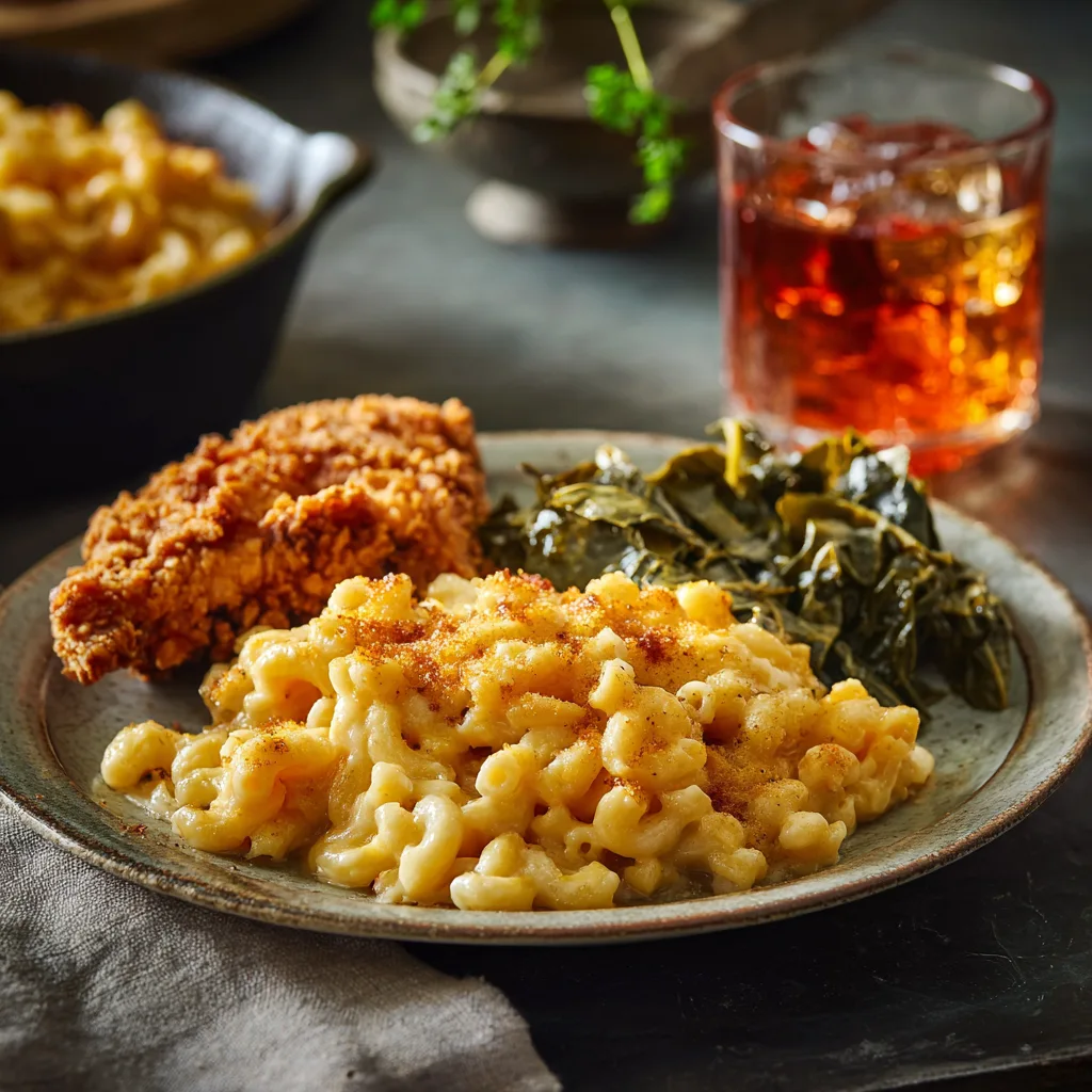 • Green Veggies: Collard greens or green beans cut through the richness.