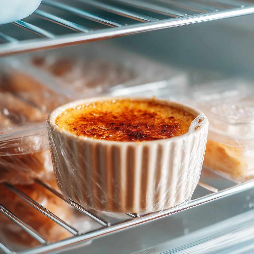 Store any leftover crème brûlée in an airtight container in the fridge for up to 2-3 days. Do not store the caramelized sugar topping, as it will lose its crispy texture.